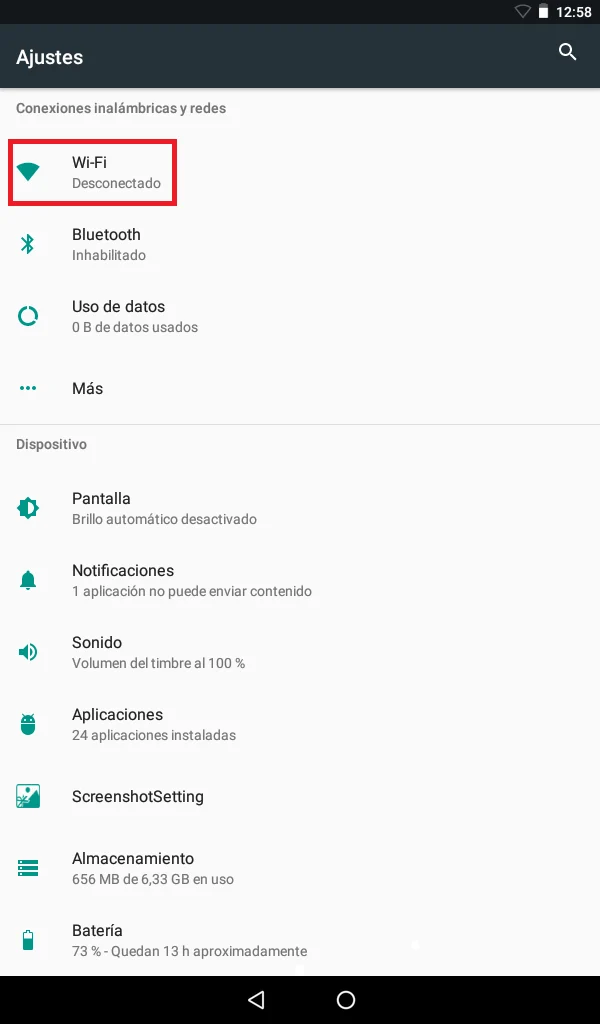 A continuación seleccionamos el submenú “Wi-Fi” y conectaremos la tablet a la red WiFi deseada de la lista: