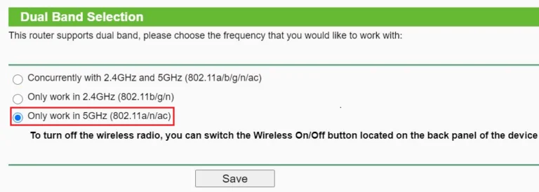 Seleccionar usar solo la banda WiFi de 5 GHz:
