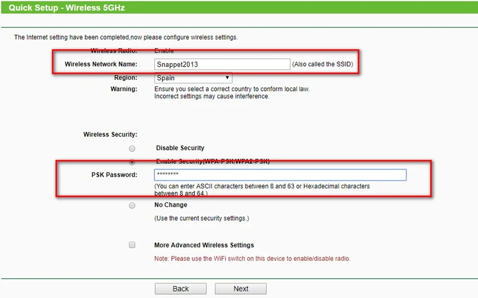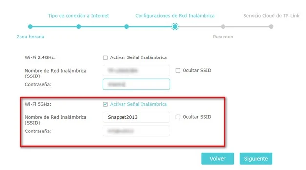 Si aparece esta pantalla, tan solo dejar activa la red de 5GHz: